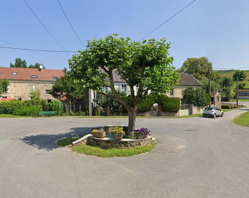 Point "A", le centre de Champvoisy, "l'arbre au centre du village" :