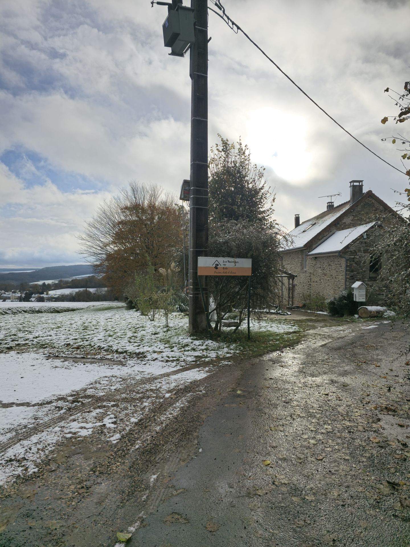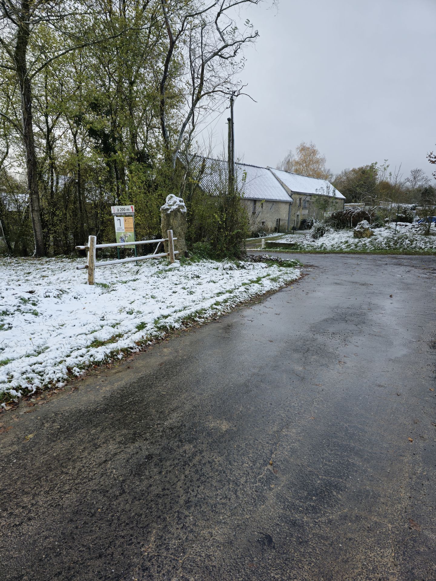 Au bout de la route, vous vous trouvez face au chenil et l'élevage des chemins de la Défense. Ce n'est pas nous, il vous faut alors prendre sur votre gauche et continuer tout droit jusqu'au bout de l'impasse.